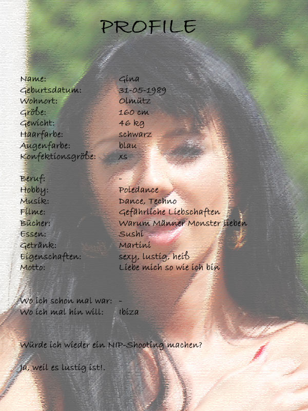 Gina war damals noch ein „Newcomer Model“ aber ich weiß dass sie im Moment sehr erfolgreich ist. Frech und lustig war sie allerdings damals schon. Sie konnte es kaum erwarten sich endlich vor unserer Kamera auszuziehen.