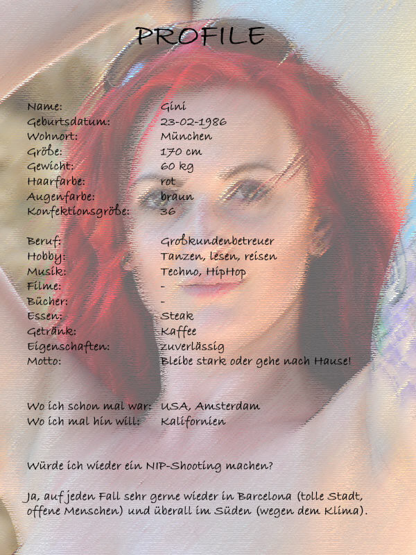 Gini ist das vierte Model was mit uns 2105 in Barcelona war. Gini ist die älteste von den 4 Mädels und auch die, die ihren eigenen Kopf versuchte durch zusetzen. Also, alles was wir geplant haben wurde erst einmal diskutiert und besprochen. 🙂 Aber das sollte trotzdem alles kein Problem für ein super Shooting werden.