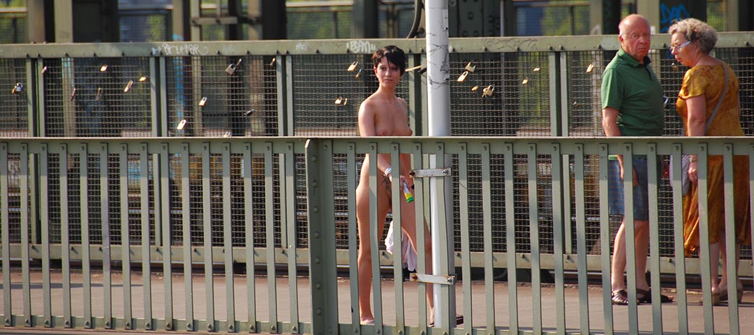 Mit Isabelle habe wir uns in Prag getroffen. Sie war am Anfang etwas schüchtern aber nach ein paar Minuten konnten wir uns relativ locker unterhalten und über das geplante Shooting sprechen. Sie hatte so etwas noch nicht gemacht und war deshalb auch ein wenig nervös. Isabelle bat uns erstmal da zu starten wo es nicht so voll ist. Kein Problem. Wir begannen mit unserem Interview am Ufer der Moldau und nach ein paar Minuten stand sie auch schon nackt da. Am Anfang war ihr das wohl auch etwas unangenehm aber nach kurzer Zeit hat sie wohl vergessen dass sie nackt war und spazierte fröhlich an der Uferpromenade entlang. Die Passanten amüsierten sich und das ein oder andere Foto wurde auch gemacht. Danach ging es in die Innenstadt. Ich weiß, am Anfang war sie ja sehr schüchtern aber jetzt wollte sie es wohl wissen. Sie hatte richtig Spass und genoss die Blicke der Passanten. Durch die volle Einkaufsstraße ging es dann knapp 30 Minuten und wenn die Strasse nicht zu Ende gewesen wäre würden wir bestimmt heute noch weiterlaufen. Aber eine Pause hatte sich Isabelle verdient. Anschließend ging es in der Altstadt weiter. Hier war es genauso voll wie in der Serie zuvor. Mittlerweile gab es auch ein paar Fans die ihr folgten und jeden Menge Fotos machten. Obwohl das Shooting im Sommer stattfand war das Wetter an diesem Tag nicht optimal für uns. Die Sonne fehlte und es war immer kurz vorm regnen. In der Summe gesehen war es aber trotzdem ein sehr erfolgreicher Tag für uns. Isabelle würde so ein Shooting bestimmt wiederholen aber ihr wäre eine andere Stadt wohl lieber.