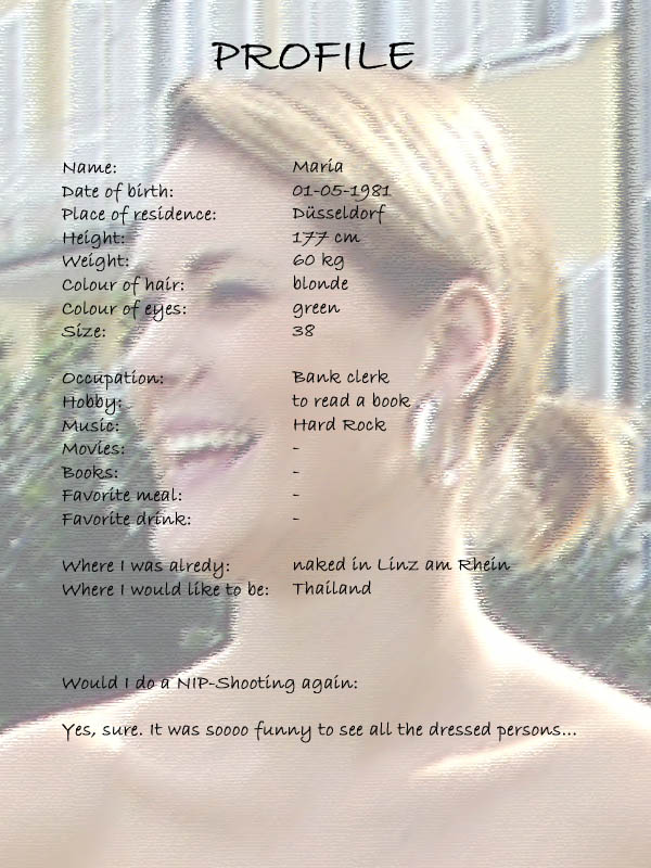 As Maria then undressed someone asked her: „Why do you do this?“ and Maria replied: „I am young and I can use the money!“ But I don’t think that was the real reason! Maria moved naked through the streets of Linz with such grace, self assurance, and elegance as if it seemed to be the most natural thing for her to do!