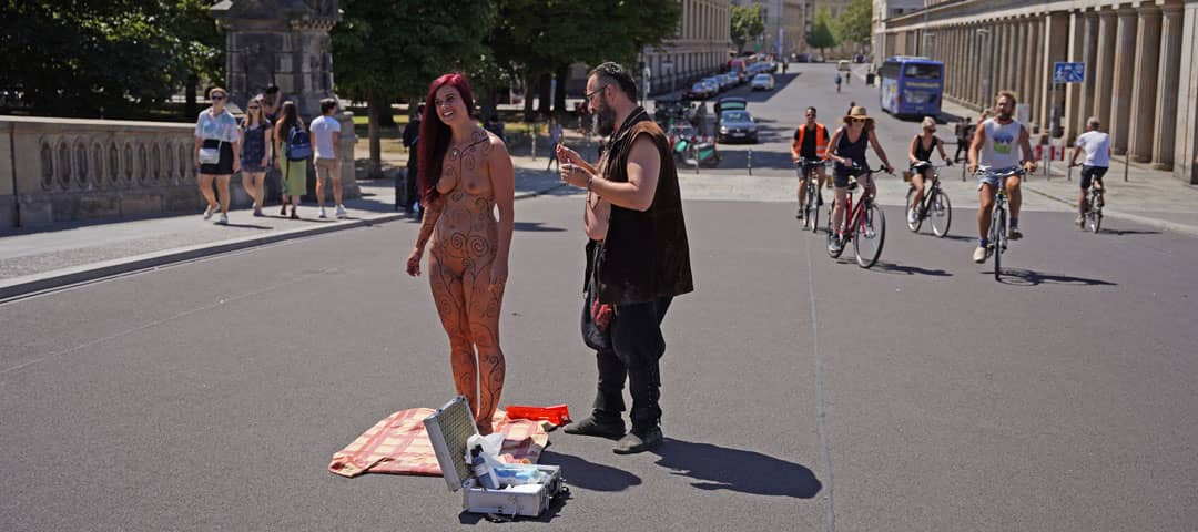 Wir starteten die zweite Serie etwas unterhalb vom Präsidentenpalast damit wir nicht gleich der Polizei in die Arme laufen. Dort waren aber so viele Passanten, da hätte uns die Polizei wahrscheinlich eh nicht gesehen. Kaum war MonaLee nackt, kam eine Gruppe Segwayfahrer vorbei und jeder wollte mit MonaLee ein Foto machen. Wie man auf den Fotos sehen kann hatten wir jede Menge Spass! Sogar die Polizei ist mit einem Motorrad an uns vorbei gefahren; aber auch die fand das wohl toll denn es kam nur ein kurzes Lachen und schon war sie wieder weg. Wir liefen dann noch ein paar Meter weiter und hörten dann auf um noch an einem anderen Ort Aufnahmen zu machen.