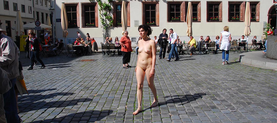 Natasha kam richtig gut gelaunt zu unserem Treffpunkt und freute sich riesig. Sie wusste überhaupt nicht was auf sie zukam aber sie war sehr neugierig darauf. Nach einem kurzen Gespräch ging es dann auch direkt los. Es war an diesem Tag noch nicht soviel los auf den Strassen aber genug um mit Natasha einen ersten „Test“ zu machen. Aus dem ersten „Test“ wurden auch direkt mal 17 Minuten. 🙂 Natasha hatte soviel Spass, sie wollte gar nicht mehr aufhören. Als kurz vor Ende Arbeiter mit einem Wagen den Platz querten packte Natasha sogar mit an und half schieben. Ja - Natasha hatte wirklich Spass! Danach ging es weiter zum Dom. Auch hier ging sie gleich am Anfang zu einer Gruppen von Menschen und unterhielt sich mit ihnen. Sie bewegte sich, als ob sie das jeden Tag machen würde. Dann ging es zum Springbrunnen um sich abzukühlen. Anschließend wurde ganz oft „Modell“ gestanden damit die anderen Passanten Fotos machen konnten. Dann ging es weiter mit der dritten Serie. Hier starteten wir an einer sehr stark befahrenen Strasse wo sie nach einem kurz Bummel an einem Verkaufsstand die Strasse überqueren musste. Brav wartete sie an der roten Ampel und ging mit den anderen Fußgängern über die Strasse. Auf einem großen Platz machte sie dann ein paar Tanzeinlagen und freute sich einfach dass es so ein schöner Tag für sie war.
