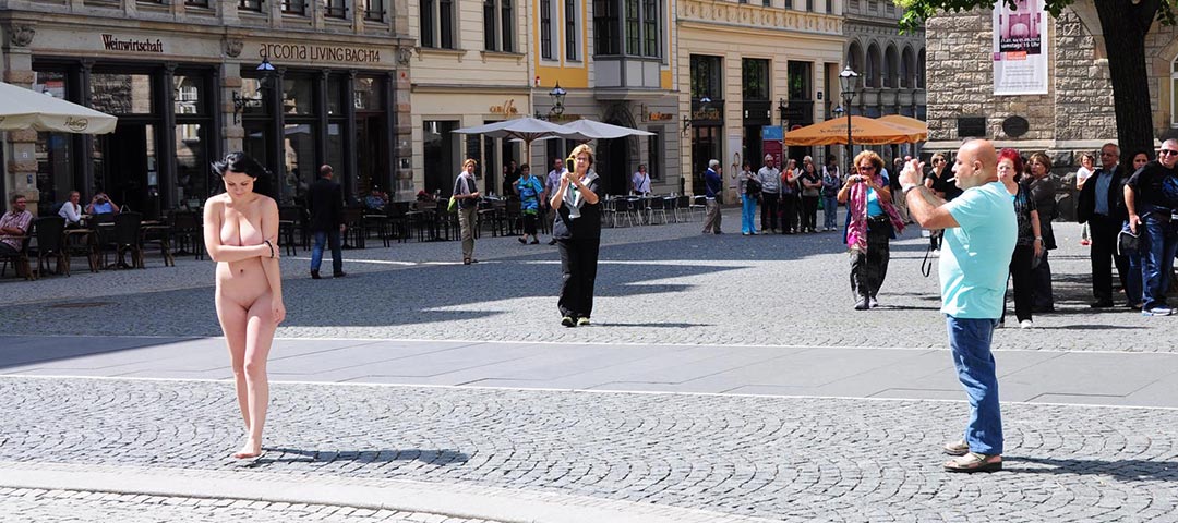 Paula haben wir in Prag getroffen und sie hat sofort einen lockeren und fröhlichen Eindruck bei uns hinterlassen. In Prague selber wollte sie nicht so gerne laufen, aber dafür in jeder anderen Stadt. Ok - kein Problem, gibt ja genug schöne Städte wo was los ist. Das aber ausgerechnet an diesem Tag ein Stadtfest war, damit haben wir nicht gerechnet. Wir sollten wohl vorher besser recherchieren. 🙂 Dort angekommen haben wir festgestellt dass die ganze Stadt voll von Menschen war und wir uns erst überlegt haben ob das nicht doch etwas zu viel ist. Ab und zu ist auch die Polizei rumgelaufen und wir wussten natürlich nicht ob es auch Polizei in zivil gab. Aber Paula war das alles egal. Sie wollte endlich starten und Spass haben. Nach unserem kurzen Interview ging es auch sofort los. Sie lief selbstbewusst die Promenade entlang und blieb immer wieder stehen um sich fotografieren zu lassen. An jeder Ecke waren viele Menschen. Es war so voll das einige unsere Paula gar nicht gesehen haben. Auf einmal war die Polizei vor uns zu sehen. Was sollen wir machen? Aufhören? Nein dafür hatten wir zu viel Spass. Wir ließen sie einfach vor uns her laufen und folgten ihnen in gebürtigem Abstand. Ich glaube die Passanten dachten das es alles abgesprochen war. Die Reaktionen waren auf jeden Fall super. Wir waren bis dahin schon über 20 Minuten am Stück unterwegs und haben ans aufhören gar nicht mehr gedacht. Weiter ging es durch die Menschenmengen und Paula hatte sichtlich richtig viel Spass. Irgendwann wurden wir dann noch von einem Reporter befragt warum wir das ganze machen würden. Das erklärt sich doch von selbst, oder? Zum Schluss der Serie redete Paula noch mit ein paar Passanten und beendete nach knapp 50 Minuten eine richtig lange Serie. Aber aufhören wollte sie nicht. Wir gingen dann noch in einen Einkaufsstrasse und auch hier lief Paula nochmal 10 Minuten gutgelaunt durch die Fußgängerzone. Paula beendete dann nach über einer Stunde das Shooting und war richtig fröhlich. Sie meinte das dieses Shooting das beste war was sie bis jetzt erlebt hat. Wir finden auch das es ein großartiger Tag war und hoffen das Euch das Video genauso gut gefällt.