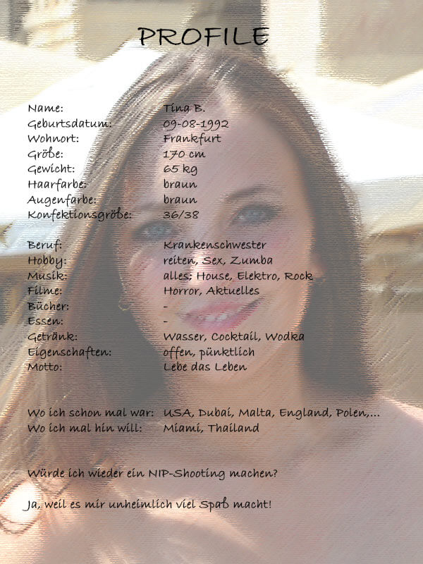 Tja, was soll ich zu Tina sagen? Die war bis jetzt das verrückteste „Huhn“ das ich je zu einem Shooting mitgenommen habe. Am Anfang dachte ich: die nimmt Drogen – aber nach ein paar Minuten stellte sich raus, die ist wirklich so. 🙂 Aber der Reihe nach…