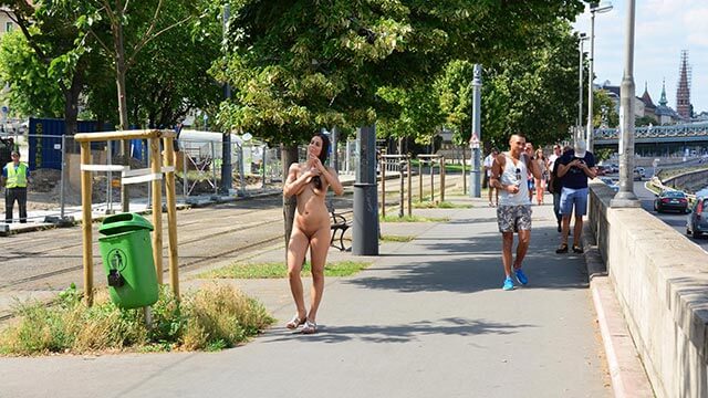 Lucie die auch dabei war fand die Idee gut und da sie eh noch einmal nackt durch die Stadt laufen wollte, starteten die beiden zusammen auf der berühmten Kettenbrücke. Kaum nackt, ging es auch schon los. Beide verstanden sich super und das zeigten sie auch auf der Brücke. Die Passanten fanden das natürlich auch klasse und wollten alle ein Foto machen. Da der Weg auf der Brücke aber ziemlich eng ist war es gar nicht so einfach da durch zu kommen. So gingen beide Hand in Hand knapp 20 Minuten über die Brücke, umarmten und küssten sich. Bei manchen Passanten hatte ich das Gefühl dass sie noch nie eine andere nackte Person gesehen haben, denn manchen blieb wirklich der Mund offen als unsere beiden Mädels da vorbei liefen.