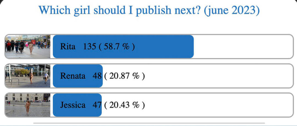 April 27, 2023 Mathias news 1 Comment Which girl should I publish next? (june 2023) Voting ends 2023-05-08 Related Posts Next Girl – Emma 2nd Shooting Next Model: Emma Release Date: November 2025 Location: Vienna Duration: 60 Minutes Next Girl – Alex Next Model: Alex Release Date: October 2025 Location: Berlin Duration: 49 Minutes Next Girl – Norah Next Model: Norah Release Date: September 2025 Location: Frankfurt Duration: 45 Minutes Subscribe Notify of new follow-up comments new replies to my comments I allow to use my email address and send notification about new comments and replies (you can unsubscribe at any time). Label {} [+] Name* Email Label {} [+] Name* Email 1 Comment Oldest Newest Most Voted Inline Feedbacks View all comments 666bers 2 years ago voto rita bellissima girl