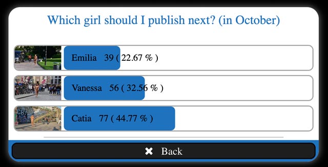 With Emilia we were in Vienna in 2020 and shot in different parks. With Catia we were in Vienna again in 2021 and shot in the same places where we were in 2020 but at a different time. (in the evening and at night). We wanted to see if the reactions are different. We were in Wuerzburg with Vanessa in 2020 and shot a film in parks and in the pedestrian zone. All 3 girls had fun and were about 45 minutes on the road.